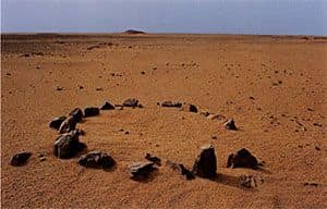 Nella spedizione Negro-Damiano del 1993 oltre il Grande Mare di Sabbia è stato scoperto un sito in cui una serie di tumulti è disposta a semicerchio; la disposizione è chiusa verso est dal cerchio di pietre della foto; anche il cerchio è a sua volta chiuso ad est da una pietra più alta delle altre infissa in verticale. I manufatti rinvenuti fanno datare il sito al Paleolitico superiore (40.000 – 9.000 a. C.) ; la struttura ipoteticamente può essere interpretata come un santuario solare per la disposizione verso est dei suoi elementi ; in questo caso sarebbe uno dei più antichi santuari oggi noti in Egitto