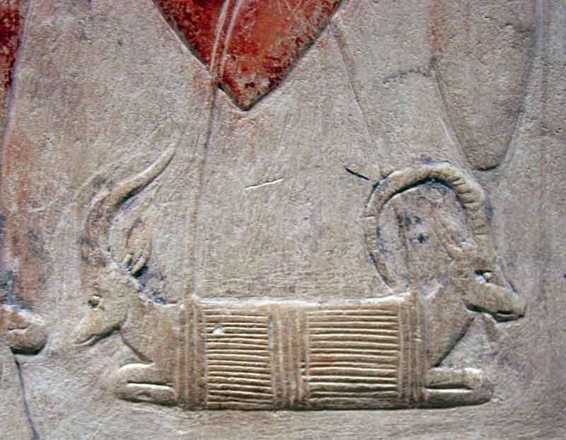 Nel vestibolo sono raffigurate le offerte recate al defunto, in questa immagine, un uomo conduce al suo cospetto un orice