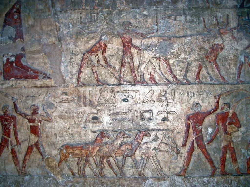 I rilievi scolpiti sulle pareti dei vari ambienti sono scene di vita quotidiana che ci documentano sulle condizioni materiali dell’Antico Regno : semina, mietitura e battitura del grano e altre attività agricole; preparazione e cottura del pane, preparazione della birra, allevamento del bestiame e preparazione delle carni, scene di caccia e pesca e molte altre, tutte con grande ricchezza di particolari.