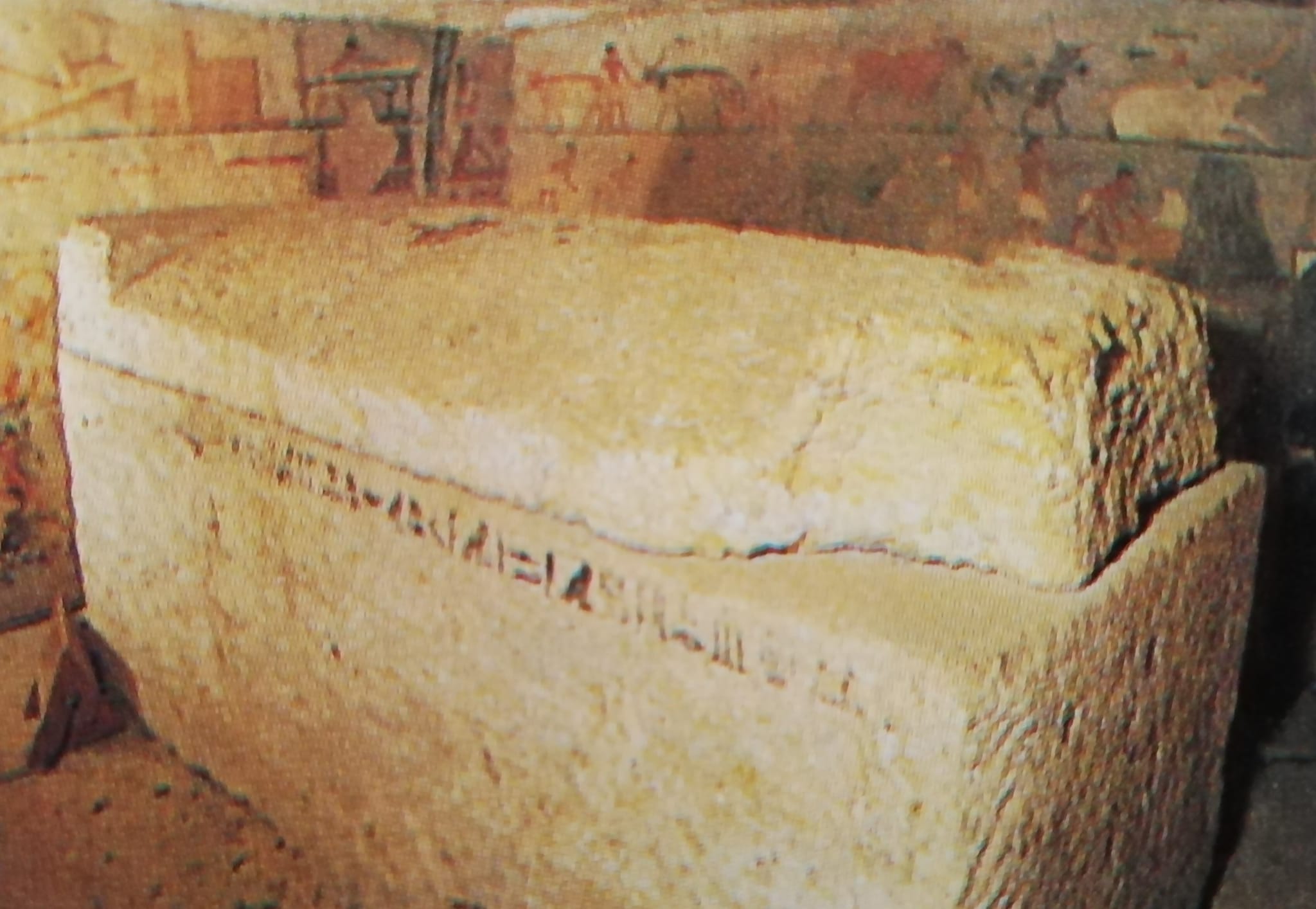 Un grande sarcofago, su cui sono scritti il nome del defunto e i suoi titoli, occupa la maggior parte Dell piccola camera sepolcrale, alla quale si accede tramite un pozzo.