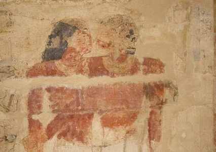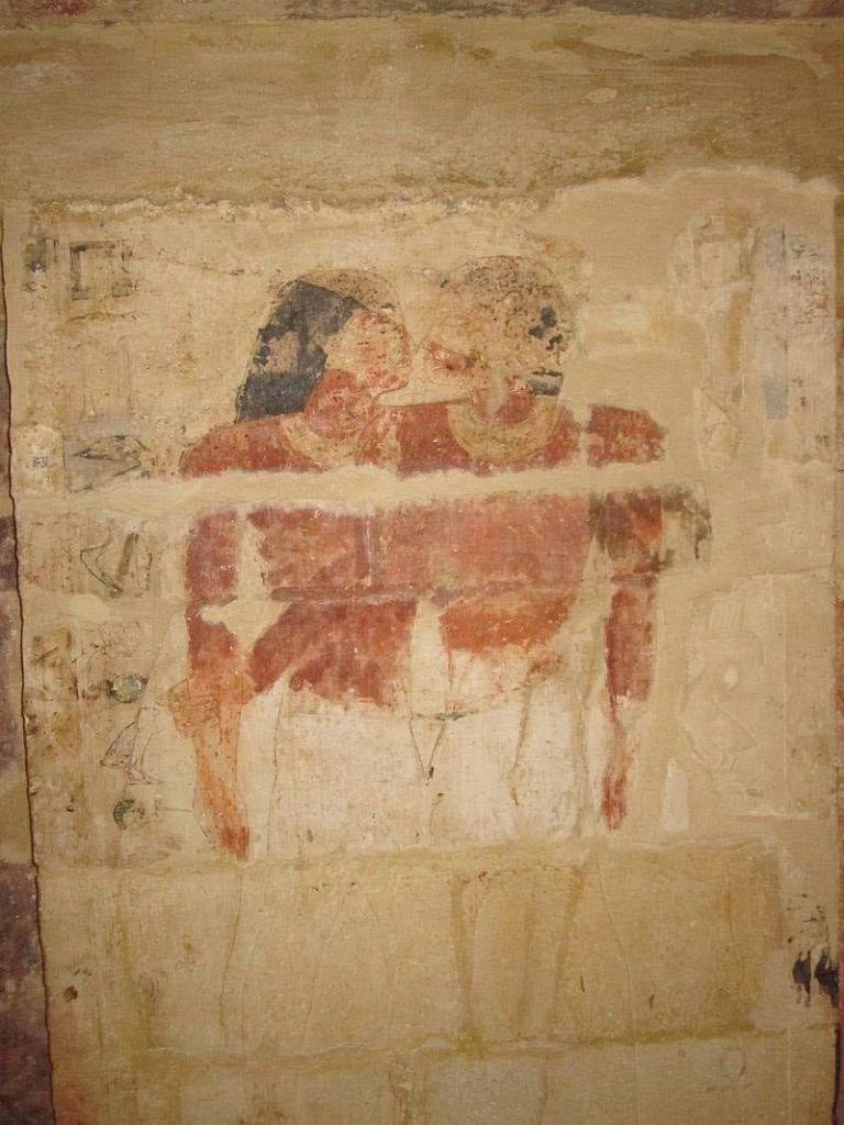 Sulla parte della parete ovest, situata tra le due aperture che permettono di accedere alla camera delle offerte, sono raffigurati Niankh-Khnum e Khnumhotep che si abbracciano con affetto.