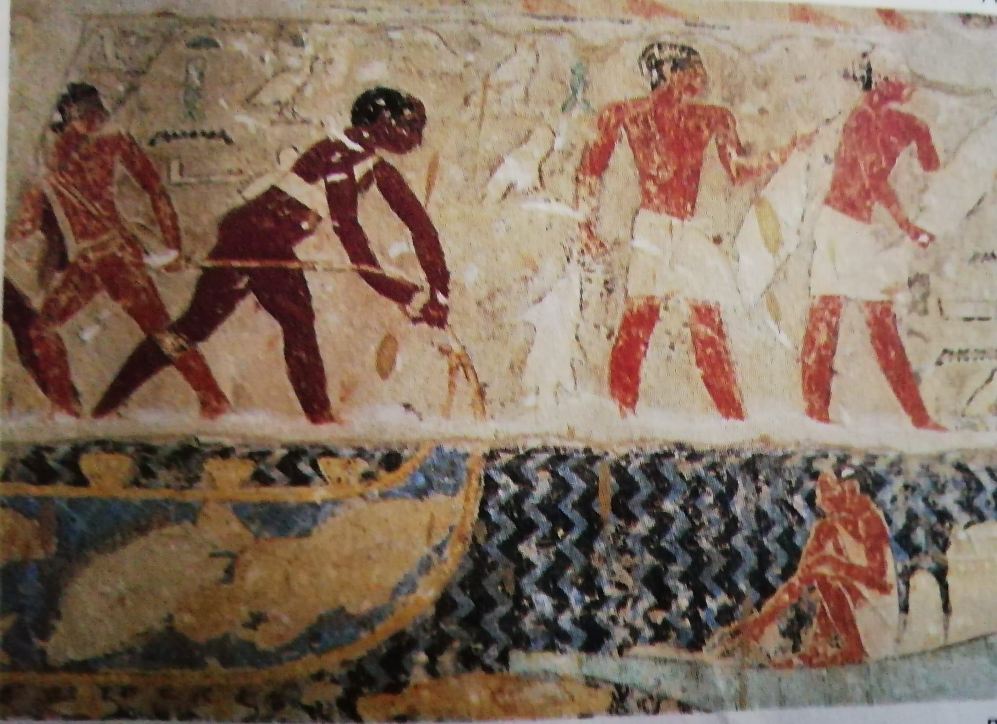 Nella prima le pareti sono decorate prevalentemente con scene agricole , nautiche, di caccia e pesca, di preparazione degli alimenti e di artigianato.