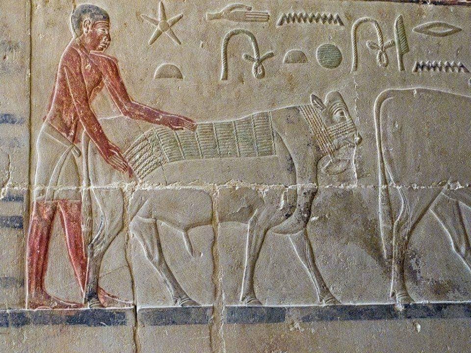 Il tema dei lavori agricoli è assai ben presentato nella tomba: nella scena quattro al lavoro intenti a dissodare la terra con delle zappe di legno per preparare la semina del grano