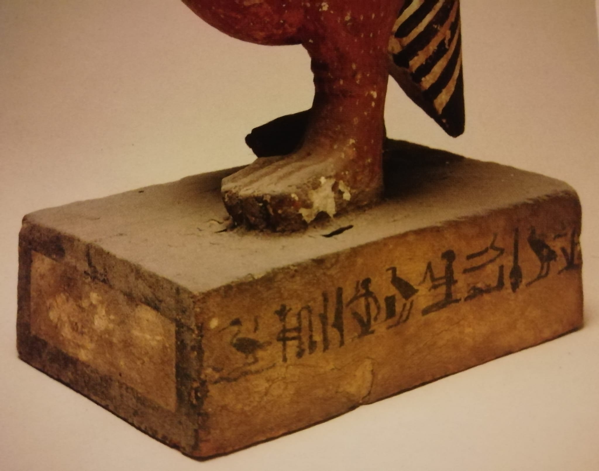Come indica l’iscrizione alla base, questa statuina fu dedicata alla dea da uno scriba-disegnatore di Deir el-Medina di nome Parahotep e dai suoi due figli.