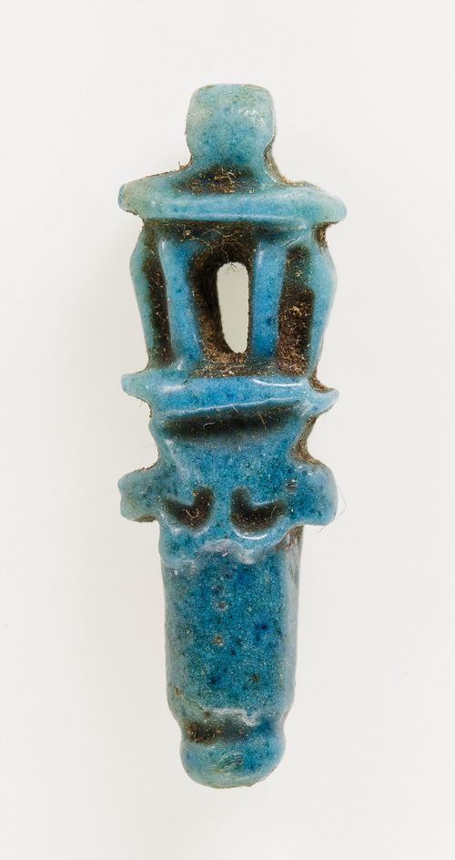L’amuleto a forma di sistro in faience proveniente dalla TT117. MMA 27.3.605