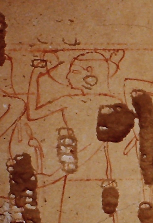 Particolare di un portatore della statua di Maat offerta in tributo. Da: Gordon, Andrew Hunt. “Theban Tomb 118: its Foreign ‘Tribute’Scene and its Owner Amenmose.” CIPEG Journal: Ancient Egyptian & Sudanese Collections and Museums 5 (2021)