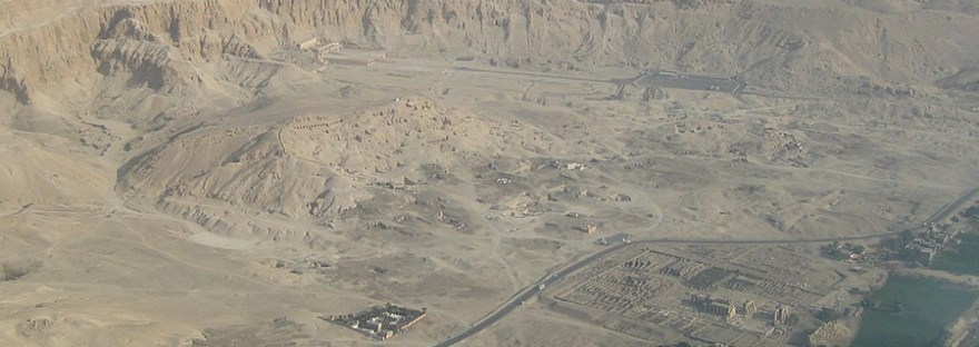 In corrispondenza di Karnak, che si trova sulla sponda orientale del Nilo, si trova, quasi all’imboccatura della Valle dei Re, la necropoli più antica di el-Taref seguita immediatamente da Qurna e, procedendo da nord verso sud: Dra Abu el-Naga, el-Assasif, Deir el-Bahari, El-Khokha[5] seguita da Sheikh Abd el-Qurna che un ampio vallone separa da Qurnet Marai dominata da una collina su cui si innalza il monastero copto che dà il nome alla retrostante valle di Deir el-Medina. Proseguendo verso sud si incontra la Valle delle Regine[6] , mentre ad est si trova Medinet Habu, con il tempio funerario di Ramses III a sud del quale si trova l’immensa area[7] occupata dal Palazzo reale di Amenhotep III, Malkata.