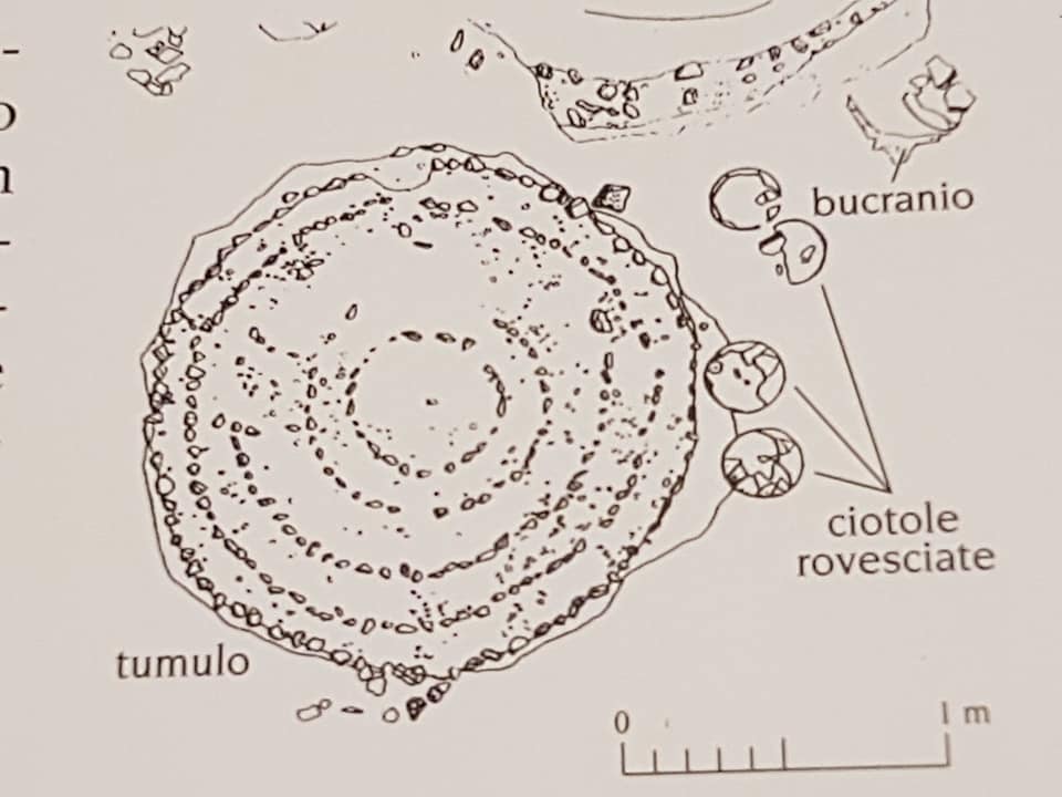 Uno dei grandi tumuli reali il cosiddetto tumulo K III (ricostruzione del Dottor Paolo Damiano) che ne evidenzia i dettagli architettonici. Si noti al centro il corridoio sacrificale, in cui si trova la maggior parte dei corpi dei sacrificati; sul lato destro la camera sepolcrale, in cui veniva deposto il sovrano; i muretti più piccoli, posti trasversalmente alle pareti maggiori, sono introdotti successivamente per creare sepolture sussidiarie. Il diametro del tumulo nella realtà è di 98 metri. (foto di Stefano Simoni).