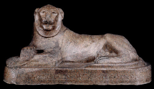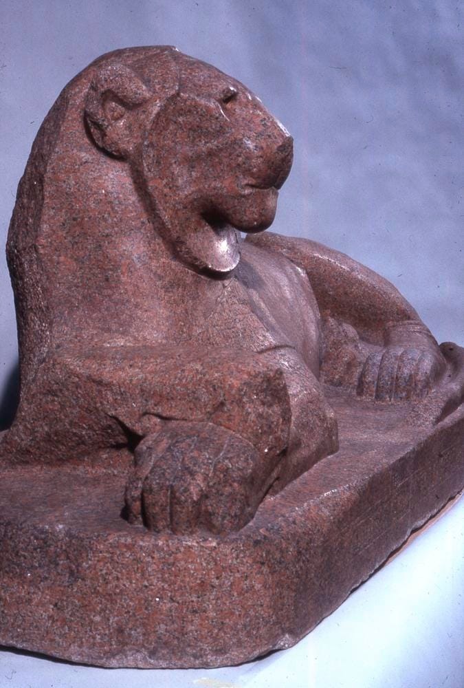 Originariamente posti all’ingresso come sorveglianti del tempio dii Soleb, erano presenti due leoni in granito rosso mis: 117x93x216 cm British Museum.