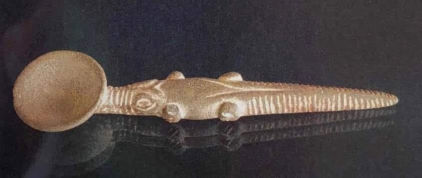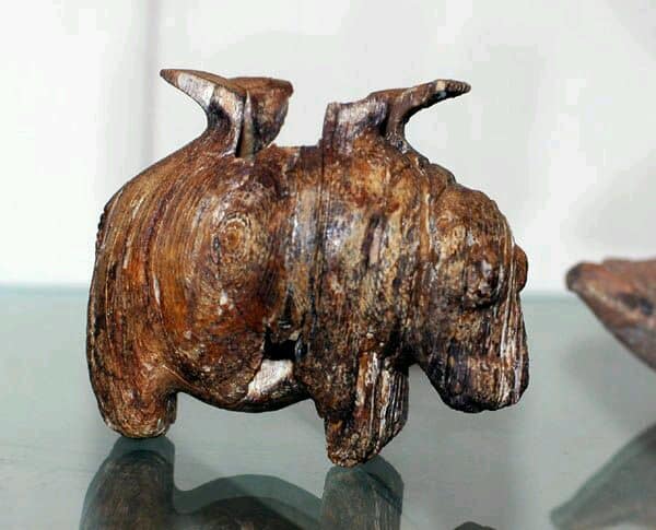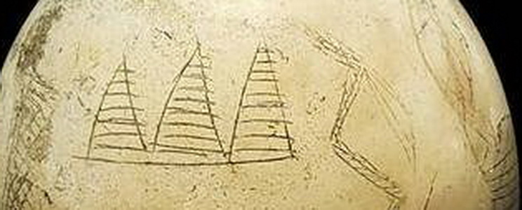 Questo guscio d’uovo di struzzo è stato scoperto dall’egittologo britannico Cecil Mallaby Firth (5 luglio1878-25 luglio1931) alla fine degli anni ’10 dello scorso secolo nella tomba di un bambino presso la necropoli di Darka, vicino ad Assuan, un sito oggi completamente sommerso dalle acque del lago Nasser. Si tratta di un oggetto che aveva un duplice scopo: uno funzionale, essendo utilizzato per contenere liquidi, come dimostra il foro il foro in cima, l’altro, prettamente rituale, in quanto simbolo di rinascita; un’ ulteriore conferma della fiducia che questi antichissimi abitatori della Valle del Nilo riponevano nell’idea di una vita oltremondana. La decorazione va, invece letta nell’ottica dei motivi artistici tipici della produzione predinastica. I due fiumi, in realtà, non sono altro che rispettivamente uno struzzo ed un serpente. Per quanto riguarda le presunte piramidi, si tratta della rappresentazione stilizzata, estremamente diffusa anche sui vasi e ceramiche coeve, di montagne o, in generale di alture, colline, dune, ecc. (Immagine n. 3).