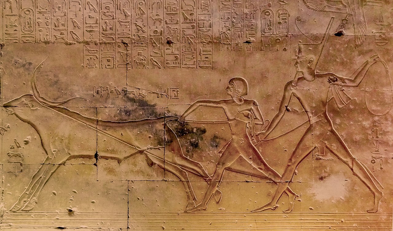 Ramses II ed il figlio catturano il toro sacro, Abydos, tempio di Sethi I