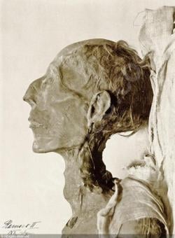 Il cranio recava una profonda frattura (visibile nell’immagine), prova di una ferita violenta e fatale, molto probabilmente inferta con una mazza, arma da guerra molto usata ai tempi di Ramses, e ciò ha indotto l’egittologo ad ipotizzare che il principe, comandante dell’esercito, fosse stato ucciso in battaglia e poi riportato a Luxor per le esequie.
