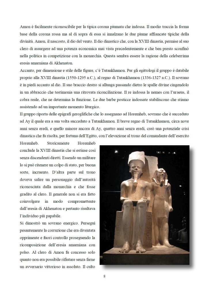 A sinistra: Amon-Ra era il grande dio tebano nonché una delle principali divinità a livello nazionale. Il suo culto non poteva quindi mancare tra gli artigiani di Deir el-Medina che lo veneravano al fianco di divinità di carattere più popolare. Qui il dio è effigiato a torso nudo, con un gonnellino su cui poggia le mani. Dell’originaria corona sul capo rimangono solamente le tracce.