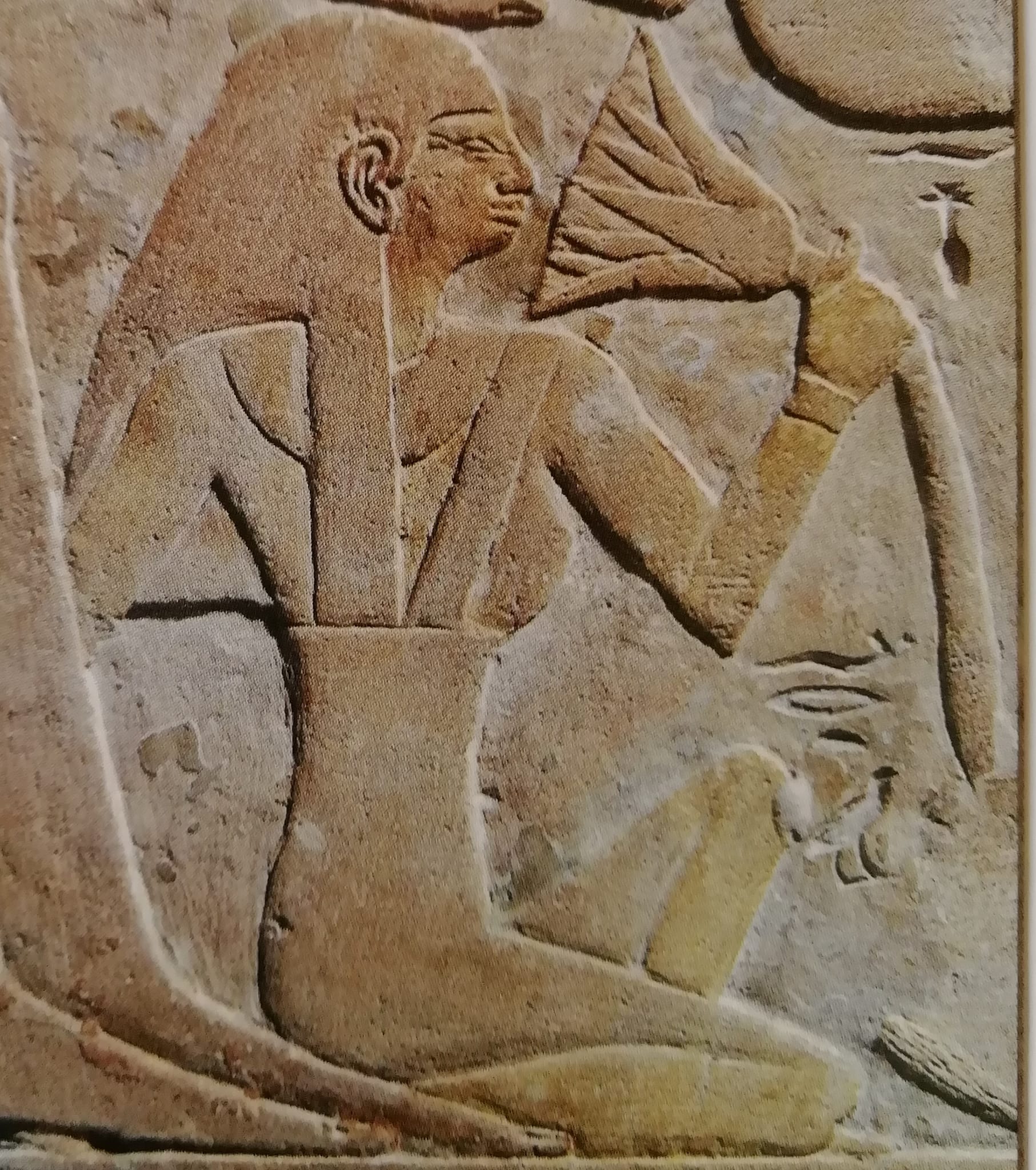 Il dettaglio proviene dalla stele funeraria di Ramose, funzionario della Diciannovesima Dinastia che servì in qualità di scriba e amministratore sotto Ramses II. Ramose era un funzionario del tempio, appartenente ad una famiglia che deteneva alti incarichi fin dal regno di Tuthmosi IV (Diciottesima Dinastia). Fu scriba del tesoro del tempio in qualità di contabile per gli Armenti di Amon e amministratore capo per la Casa del Portatore del Sigillo.