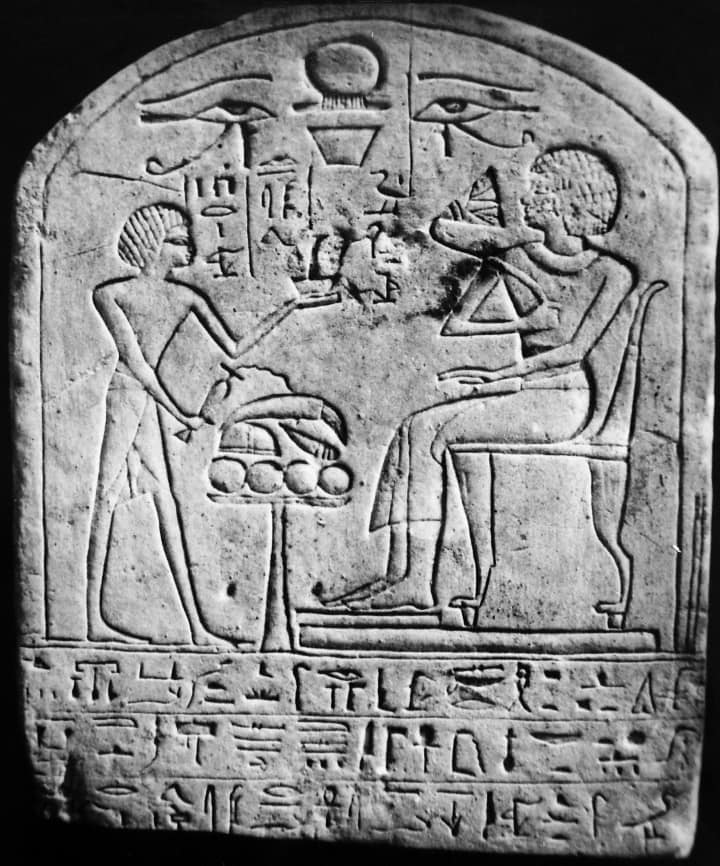 Durante il Nuovo Regno queste stele votive erano comuni e recavano scolpito oltre al nome della divinità cui erano dedicate ed al nome dell’offerente anche orecchie umane finalizzate a garantire che le preghiere che ad esse si accompagnavano venissero ascoltate; erano diffuse anche offerte votive con tale forma che venivano presentate al tempio per impetrare l’aiuto di una divinità.
