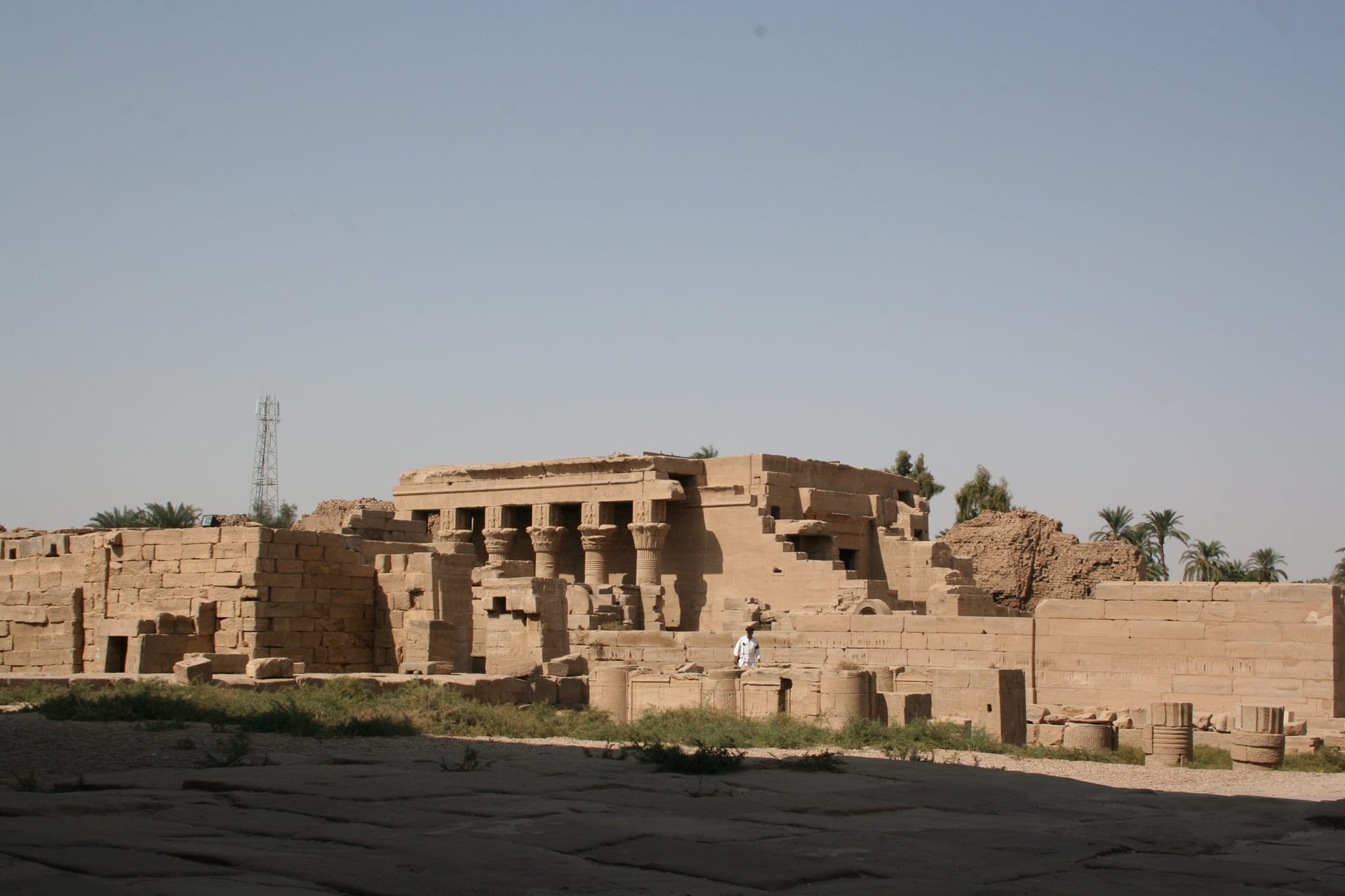 Il Tempio è circondato da numerosi edifici, tra cui un Tempio di Iside, due mammisi, o “case della nascita”, di epoca tolemaica e romana, una basilica copta e un lago sacro.