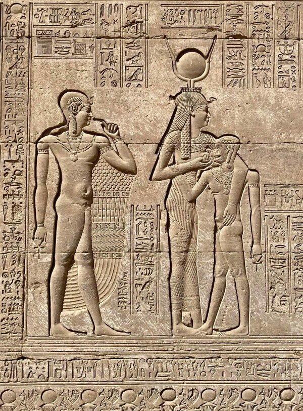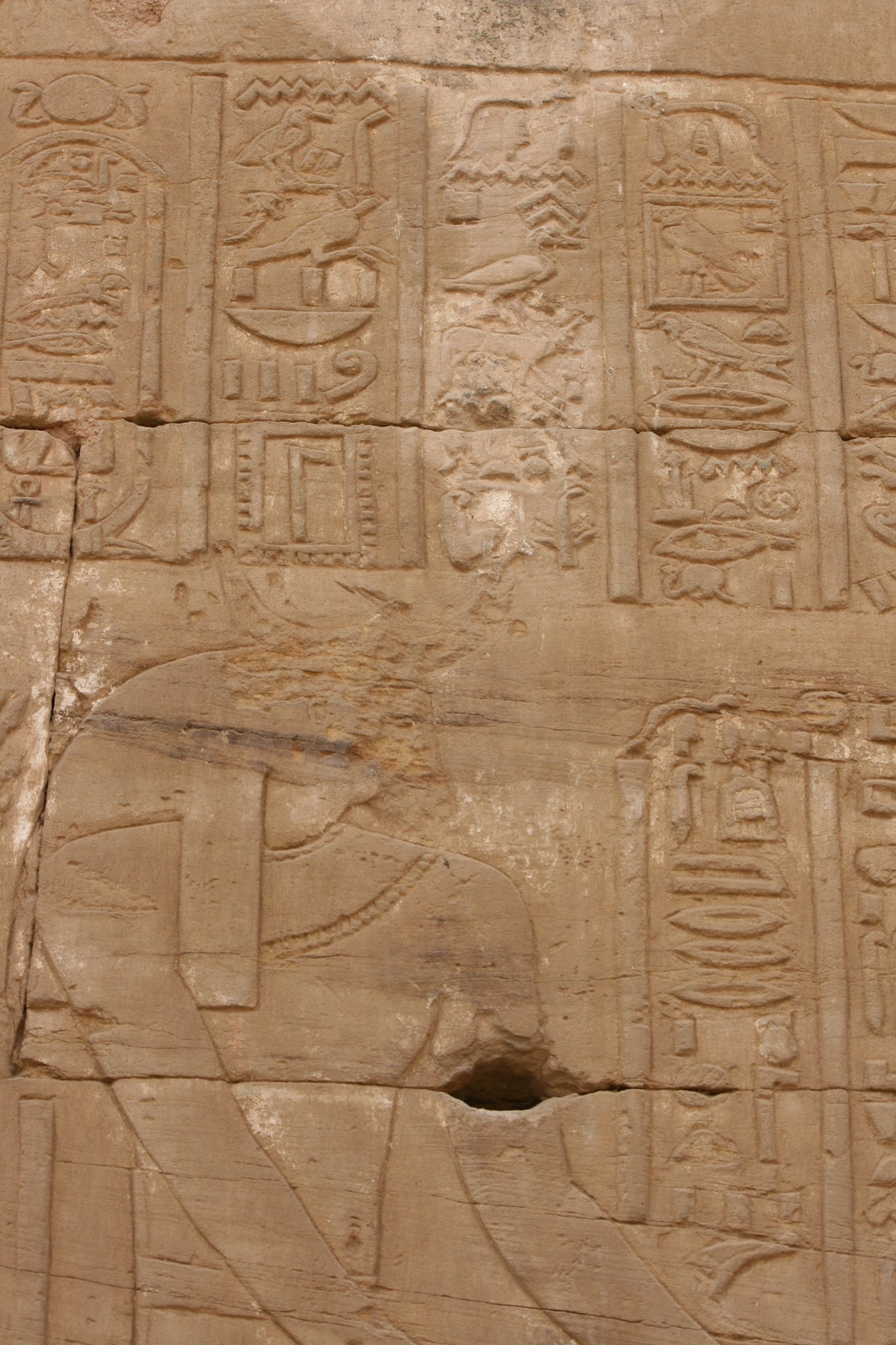 Sebbene le molte immagini di personaggi regali e divini riprodotte sulle colonne, che compongono scene del re offerente agli dei, siano state deturpante, mostrano tuttavia chiaramente la lieve rotondità che caratterizza la figura umana nell’arte tolemaica.