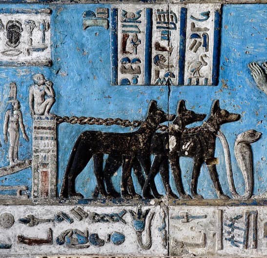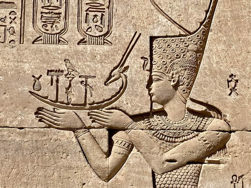 In una cripta Pepi I, sovrano dell’Antico Regno, è raffigurato offerente una statuetta di Hathor.