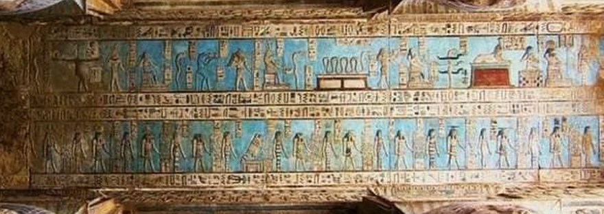 Le decorazioni parietali raffigurano il re che fa offerte agli dei di Dendera.