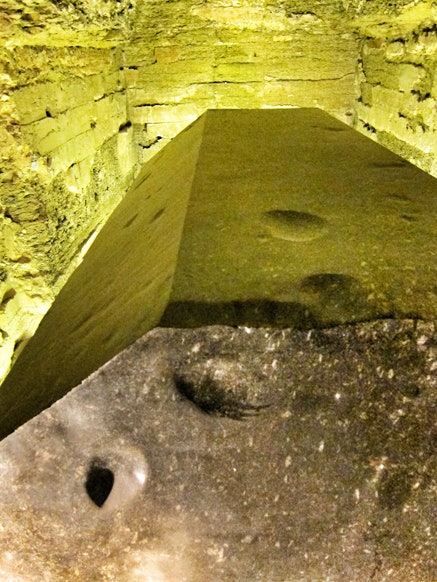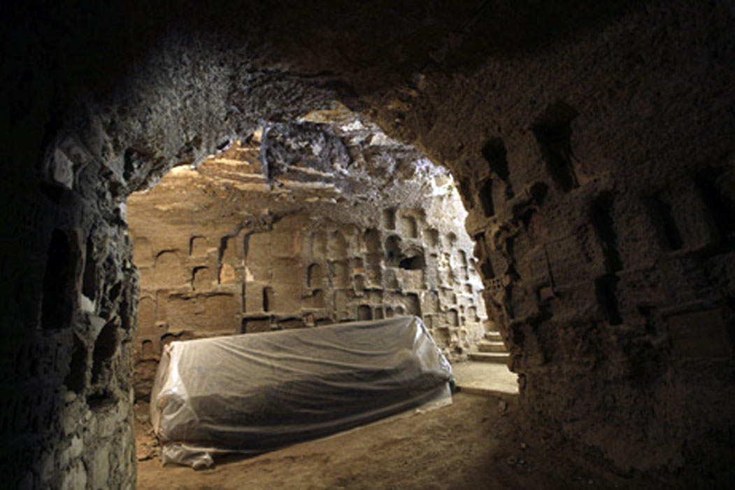 22 dei 24 sarcofagi erano perfettamente al centro di ogni nicchia. Solo due si trovavano fuori posto, decentrati; uno fu ritrovato (ed è lì tuttora) nel mezzo di una galleria laterale con il coperchio in un’altra. Perché?