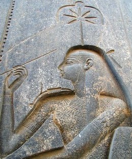 Rilievo parietale raffiguranti Khonsu, nel tempio a lui dedicato a Karnak