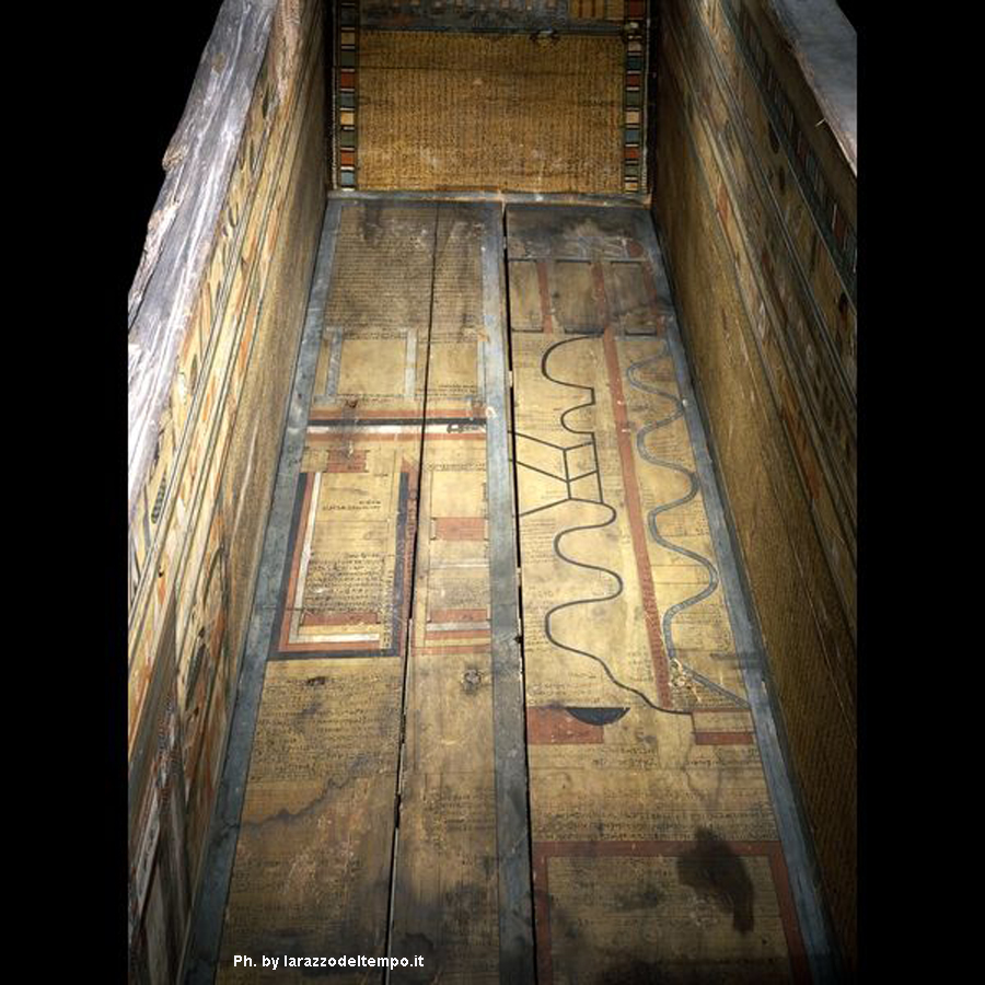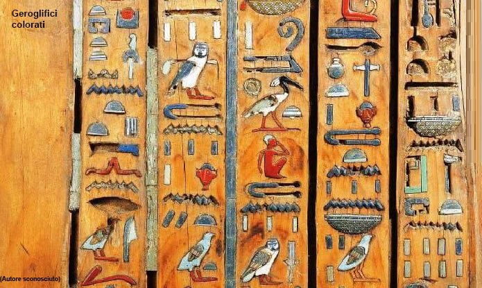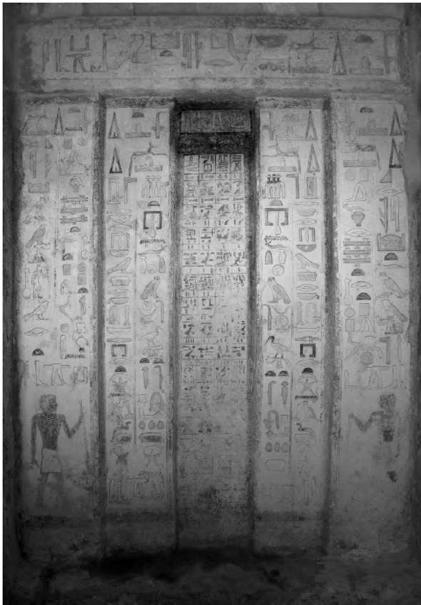 L’immagine in B.N. permette una migliore lettura dei testi geroglifici. Questi, sono espressi nelle parti più rappresentative. A volte, per motivi di spazio, non esprimono al completo tutto il testo del riquadro.