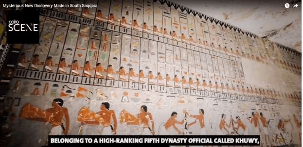 Il re è nell’atto di offrire un omaggio floreale a Tehery signore dell’occidente: divinità antropomorfa dal viso di babbuino.