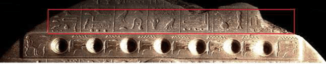 Sul testo posto sul capo del re è citata la dea Nekhbet (la bianca) di Nekhen (Hieraconpolis, località) – (ved. Testo)