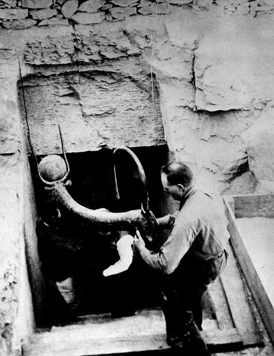 È lui. È stato il primo oggetto ufficialmente estratto dalla tomba. Lo vediamo nelle primissime foto di Burton, messo un po’ di traverso davanti al foro praticato dalla “Banda Carter” per entrare nella Camera del Sarcofago.
