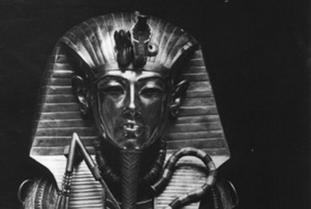 La famosissima maschera mortuaria di Tutankhamon.Il viso è un ritratto del re. Le iscrizioni sul retro della maschera ne attribuiscono la proprietà al predecessore di Tutankhamon, la misteriosa Neferneferuaton, faraone donna che regnò circa tre anni: i cartigli sono stati infatti corretti, e sotto al nome di Tutankhamon si legge ancora quello di Neferneferuaton, oggi identificata con Merytaton. Quando si decise il cambio di destinazione il viso d’oro fu staccato e modellato su quello di Tutankhamon.Da Wikipedia.