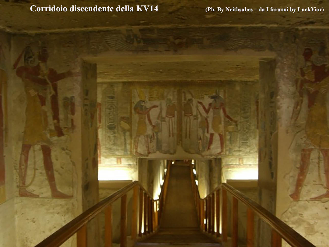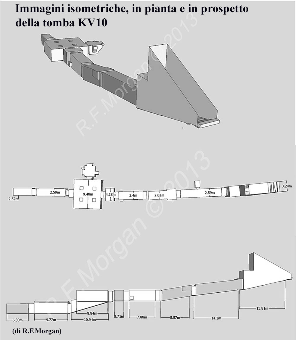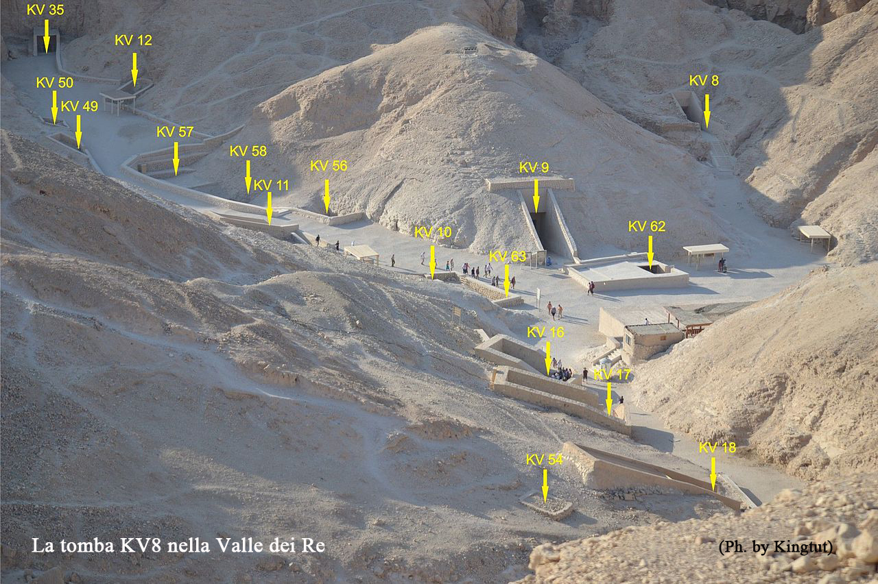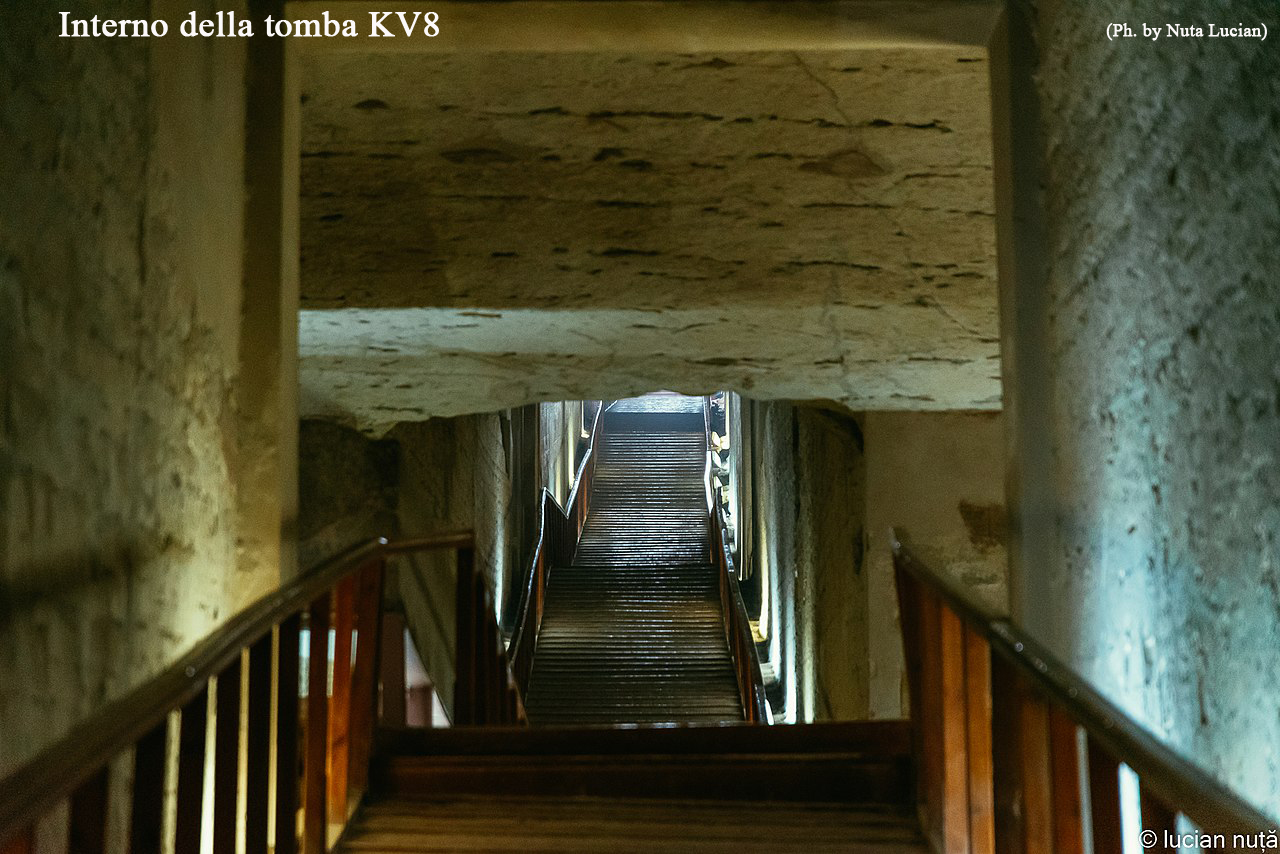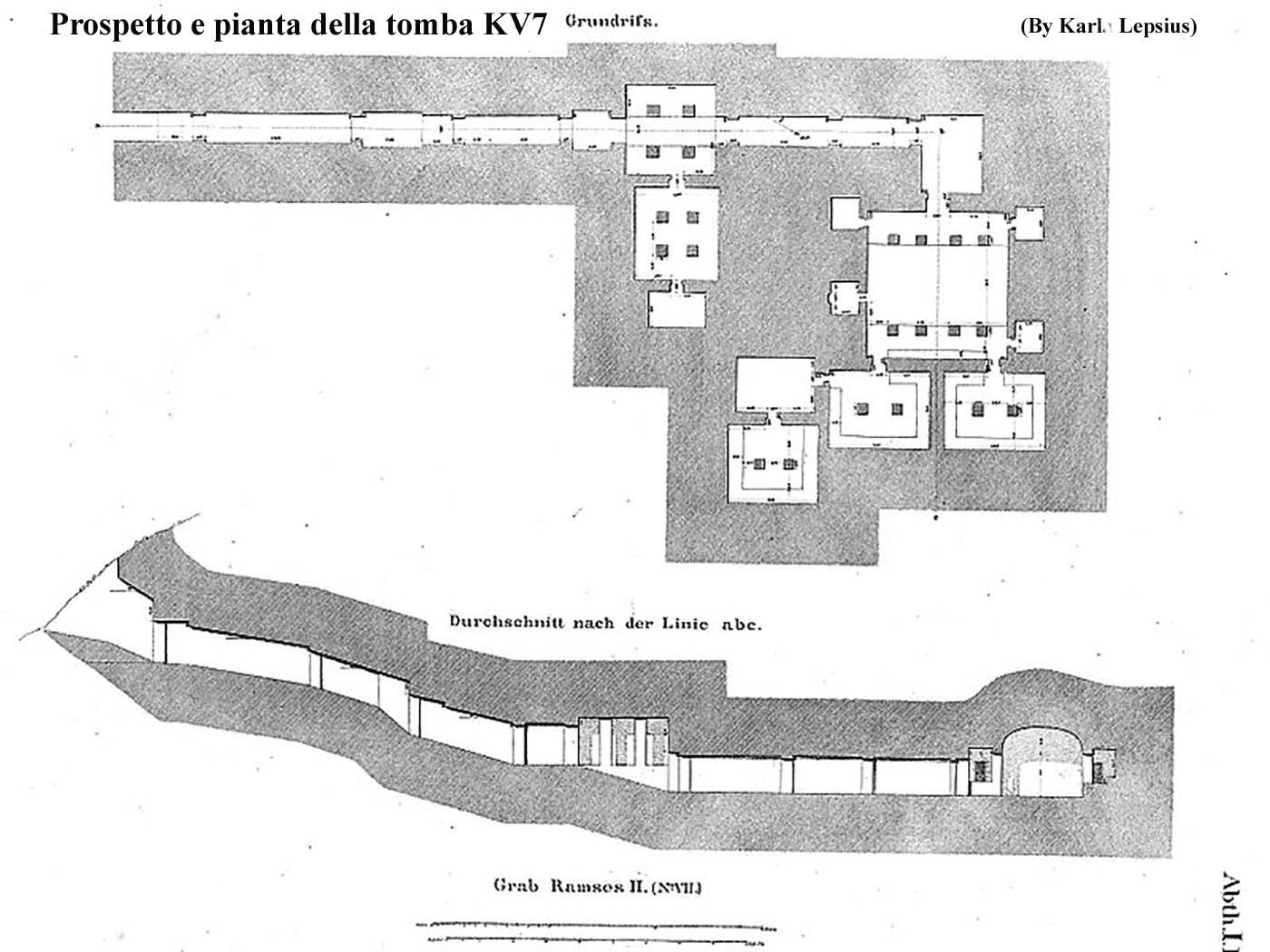 Le vicende di questa tomba sono un po’ confuse, venne iniziata da Seti II, in alcune scene troviamo Tausert con Siptah anche se il suo nome è stato scalpellato e sostituito con quello di Seti II, il sarcofago della regina venne usurpato dal principe Amonherkhepeshef, cinquant’anni dopo ed usato per lui nella tomba KV13.