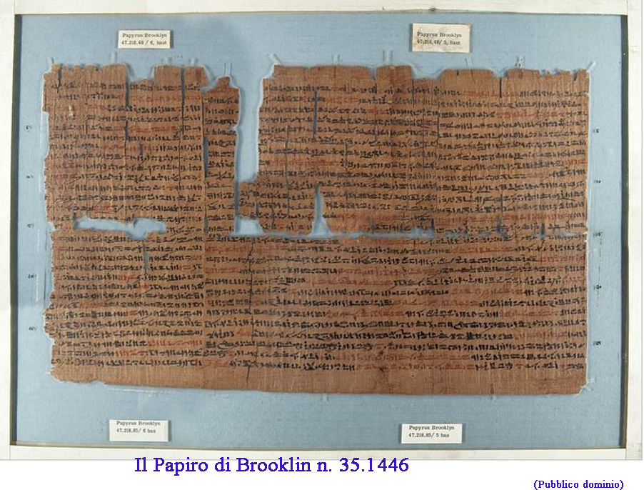 Molti studiosi sostengono che il termine “ebrei” lo si trova citato per la prima volta in un papiro risalente alla XIII dinastia e rinvenuto a Tebe, il cosiddetto “Papiro di Brooklin” n. 35.1446 nel quale viene riportato un lungo elenco di nomi di servitori della corte di Khutawy.