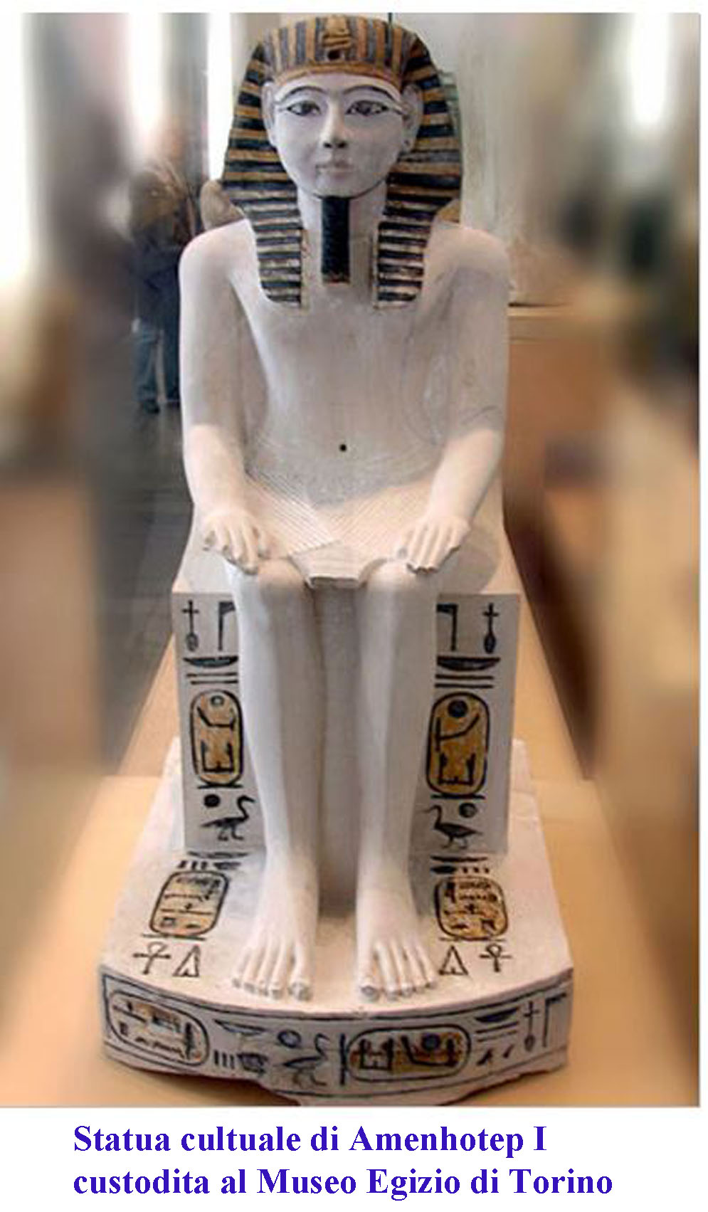 Amenhotep I regnò circa vent’anni ed alla sua morte, intorno al 1506 a.C., venne divinizzato e, come detto sopra, fu oggetto di culto, lui e la madre Ahmes Nefertari in modo particolare nel villaggio che fece costruire a Deir el-Medina. Sono molte le statue in cui è raffigurato anche se quasi tutte postume, gran parte di quelle che lo rappresentano sono idoli funerari funzionali al suo culto e provengono da epoche anche molto successive. Le statue a lui coeve sono scarse e da queste si può intravvedere che ricalcano fedelmente gli stilemi del Medio Regno, sarà poi nel prosieguo della XVIII dinastia che avverranno cambiamenti di stile che si possono riscontrare nelle statue di Mentuhotep II e di Sesostri II.