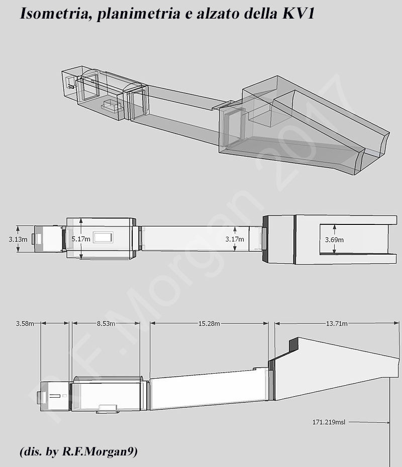 Un portale scolpito sull’architrave con un’immagine di Nekhbet ad ali spiegate e con raffigurazioni di Neith e Selkis conduce alla camera funeraria, il cui soffitto è decorato con stelle bianche su sfondo dorato; questa stanza ha forma quadrata ed annessi su ciascun lato.