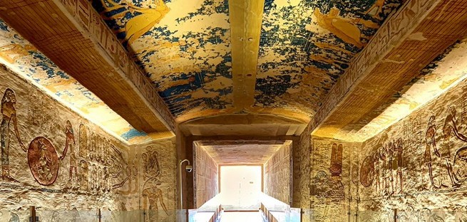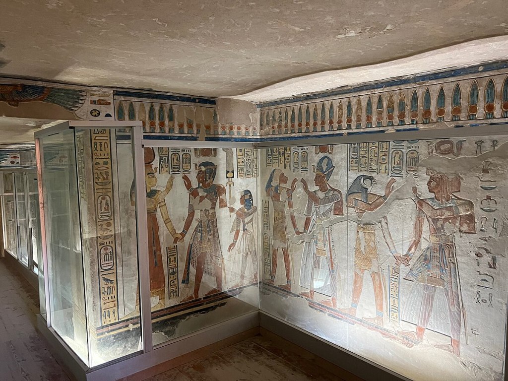 Tutto il protocollo decorativo rappresenta il viaggio che la sovrana defunta compie nell’Aldilà per raggiungere la Sala del Giudizio di Osiride, ed il momento in cui rende omaggio agli dei dell’Oltretomba ed incontra le creature ibride descritte nei testi funerari.