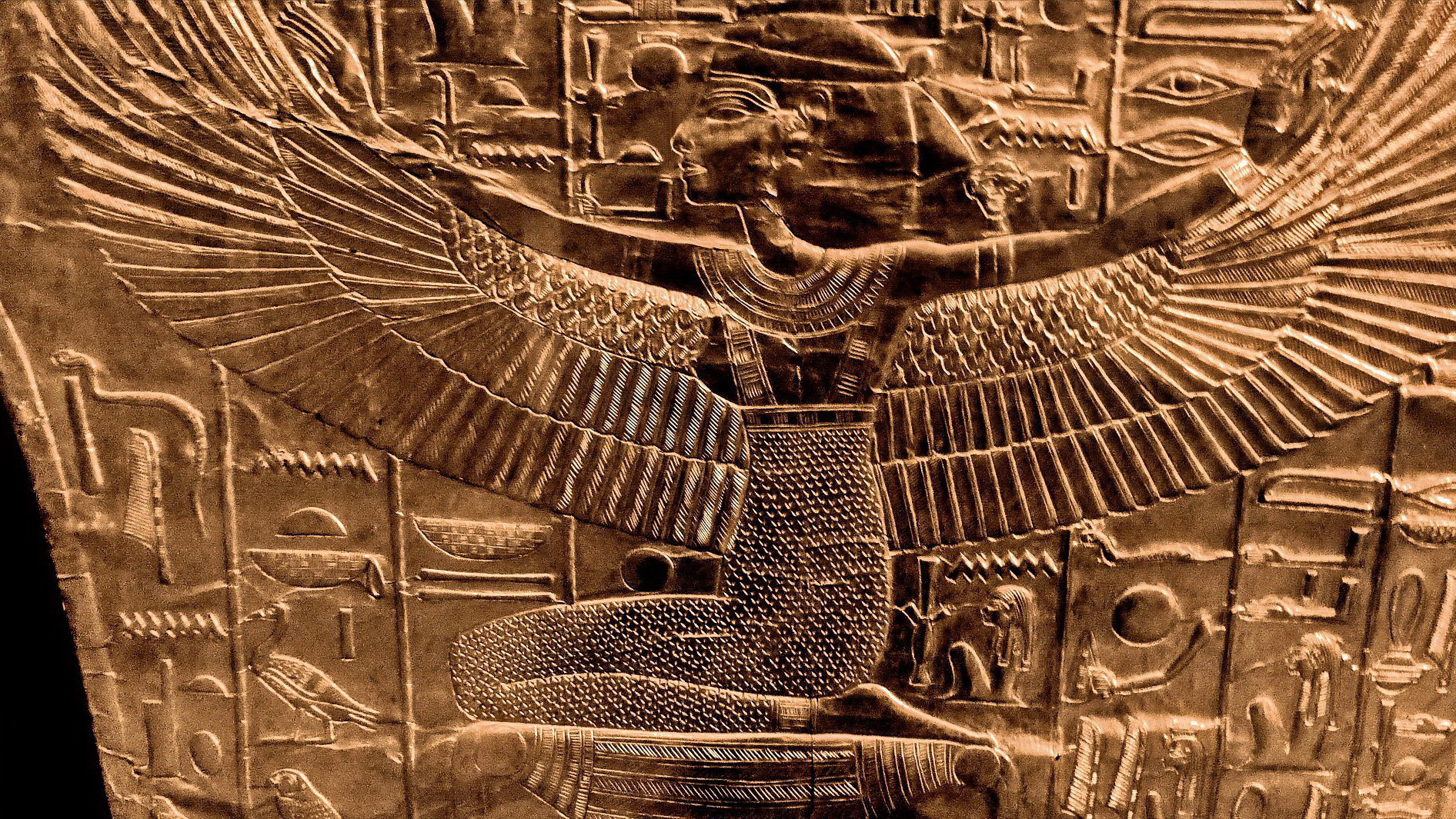 Più in basso, sui fianchi e le gambe, Iside (a sinistra nella foto) e Nephti, anch’esse con le ali spiegate