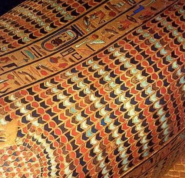 Nekhbet (a sinistra nella foto) e Wadjet (a destra) rappresentate ad intarsio come nella seconda bara