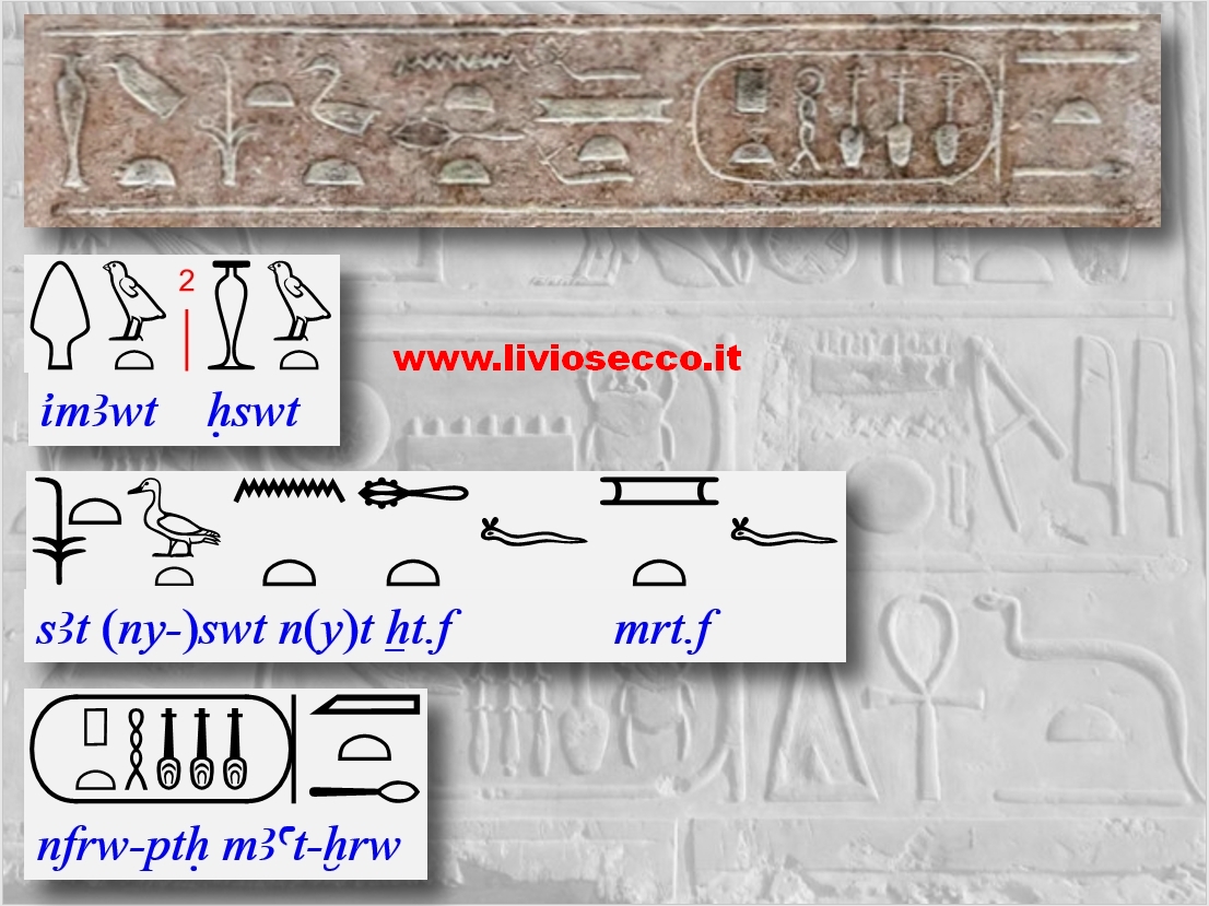 QUARTA IMMAGINE (ruotata orizzontalmente) imȜwt ḥswt [imaut hesut] la gentile, la lodata,