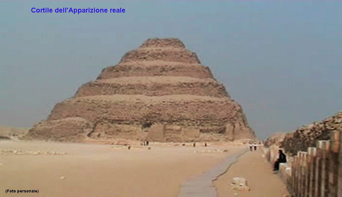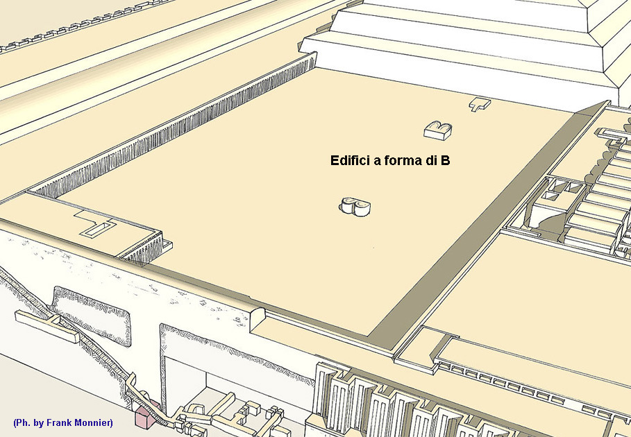 Bene, ora dal cortile Hed-Sed, costeggiando la piramide, ci dirigiamo nuovamente a nord dove incontriamo un ampio cortile sulla destra, questo è accessibile sia dal complesso della festa Sed che dal passaggio sul lato orientale della piramide.