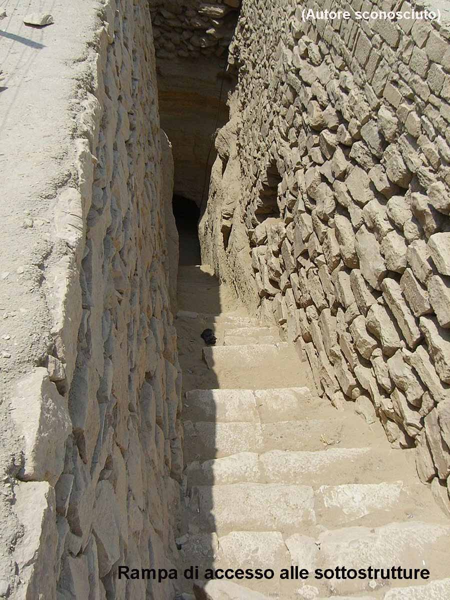 Alla base della piramide, lungo la facciata occidentale, si trovano 11 pozzi profondi 30 metri circa dal cui fondo partono ulteriori gallerie collegate fra di loro, si pensa che queste dovessero servire come luoghi di sepoltura delle donne e dei bambini della corte reale. L’imbocco dei pozzi venne successivamente inglobato nella struttura della piramide nella fase in cui fu ampliata.