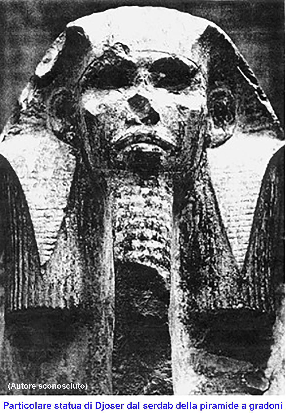 La Scultura, primo esempio di statua egizia a grandezza naturale, fu rinvenuta nel serdab del complesso funerario di Djoser a Saqqara.