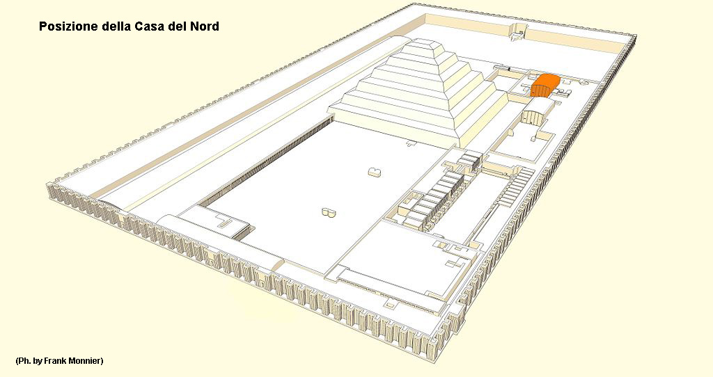 Poco oltre si trova la “Casa del Nord”, pressappoco ricalca quella del sud ad eccezione del cortile che è più piccolo, la sua funzione simbolica era quella di rappresentare la sala del trono del Basso Egitto, il Delta; forse era dedicata alla dea serpente Uto.