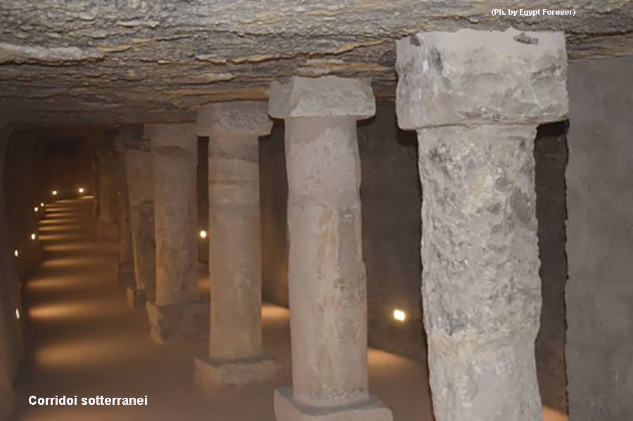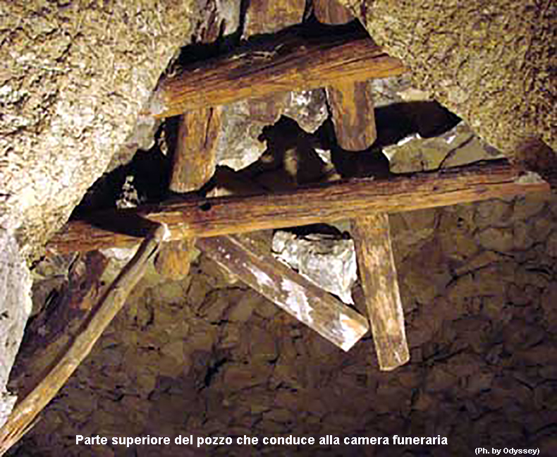 Torniamo ora al grande pozzo verticale, da esso partono quattro corridoi orientati verso i punti cardinali, questi si diramano in un complesso di gallerie estremamente articolato con numerose stanze ipogee distribuite intorno alla camera sepolcrale.