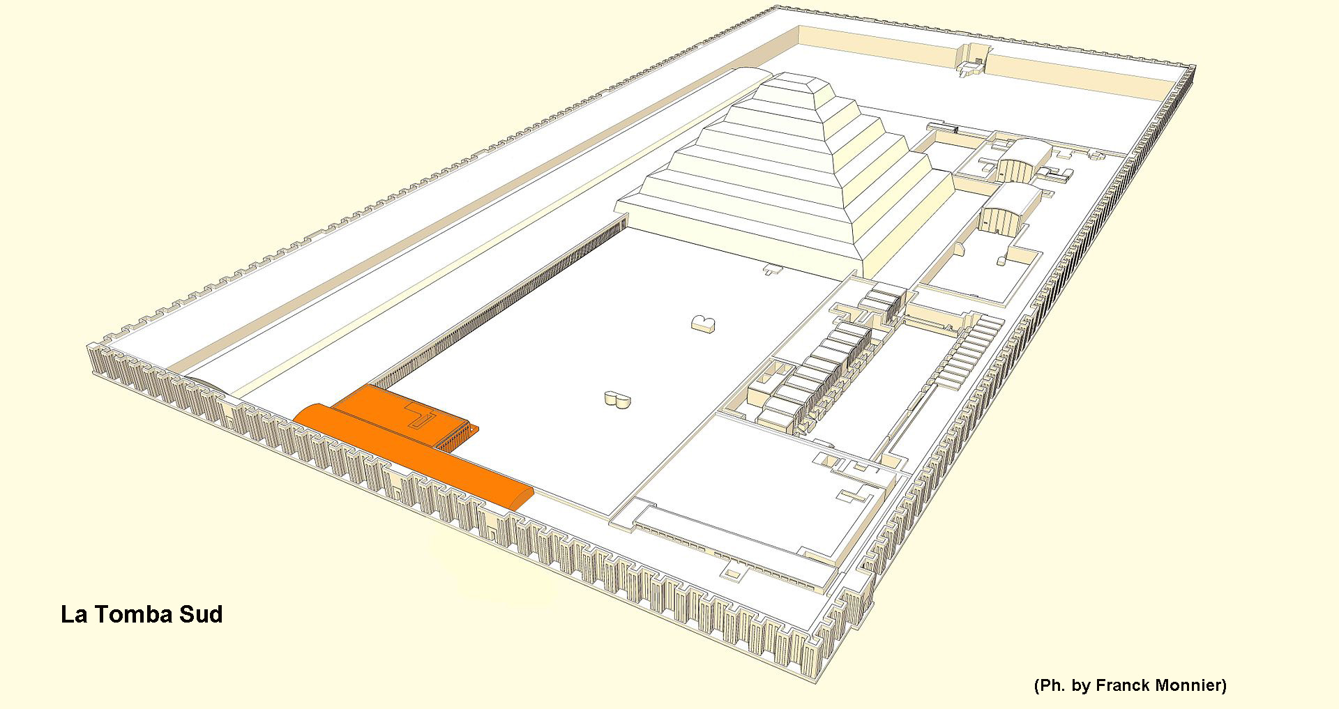 Si, un’altra tomba situata nell’angolo sud-ovest della corte, qui sorge il più misterioso fabbricato di tutto il complesso, la cosiddetta “Tomba Sud”, un secondo monumento funerario edificato proprio ai limiti del muro meridionale.