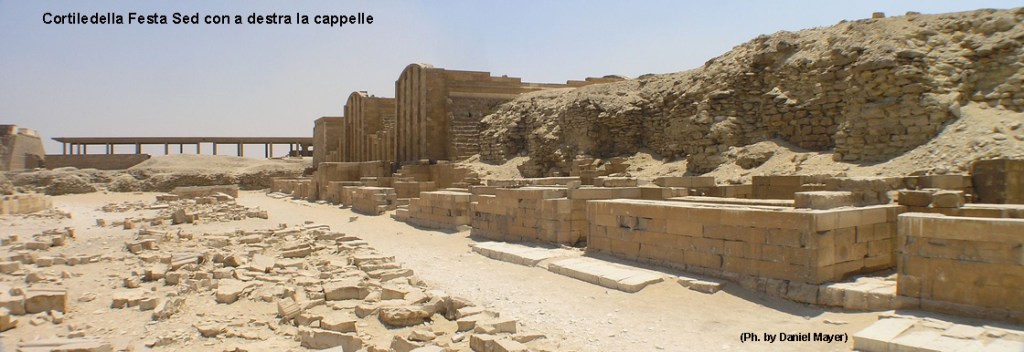 Per arrivare alla Tomba sud dalla Piramide abbiamo percorso il grande “Cortile dell’Apparizione Reale” dove si celebravano le cerimonie cultuali ed il rito della corsa sed che avveniva tra i due piccoli edifici dalla forma che ricorda una B, di cui abbiamo già parlato, e che simboleggiavano i confini dell’Egitto.