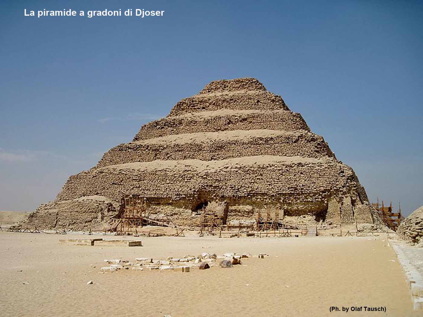 Una riconoscenza particolare va riservata all’architetto francese Lauer che dedicò numerosi anni della sua vita allo studio ma anche alla parziale ricostruzione di alcune parti del complesso funerario di Djoser. Visiteremo ora tutte la varie componenti del grande complesso funerario ma per stare in tema di piramidi voglio partire dalla piramide stessa.