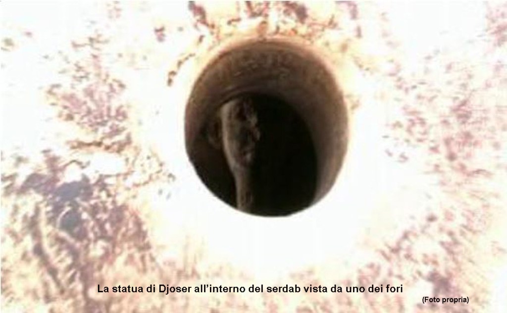 La parete nord del serdab presenta due fori nel muro all’altezza degli occhi della statua, questi avevano la funzione di permettere al Ka di Djoser di osservare la parte anteriore del complesso e le stelle imperiture del cielo settentrionale che non tramontano mai ed il mondo esterno dei vivi nonché di controllare (non si sa mai) che gli venissero sempre presentate le offerte.