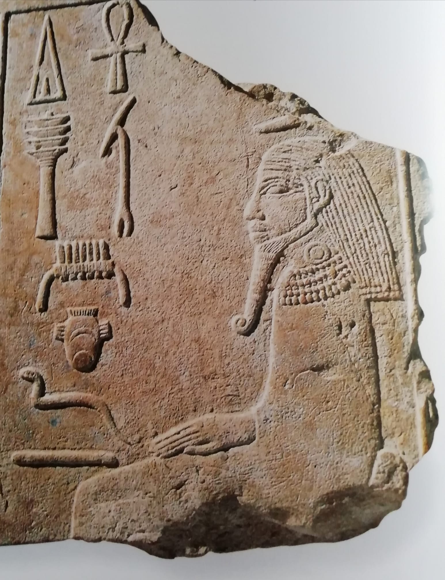 Nella foto si vede uno dei trentasei frammenti recuperati nell’area del tempio di Ra.