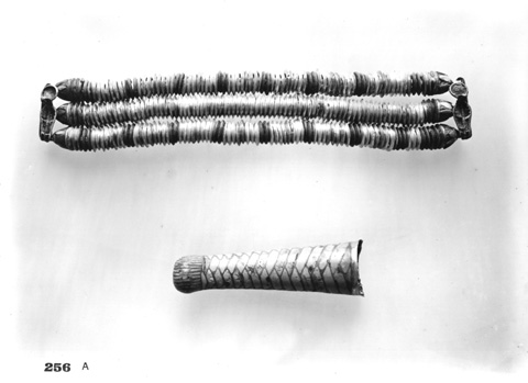 Solo tre Faraoni sono rappresentati con gli orecchini: oltre a Tutankhamon, solo Amenhotep I e Ramses II – ma in tutti e tre i casi sono raffigurati fanciulli. Se ne dedurrebbe che per i maschi adulti non fosse conveniente mostrarsi con gli orecchini. Un’ipotesi prevede quindi che la terza bara e la maschera siano stati preparati quando Tutankhamon era ancora un ragazzino all’ascesa al trono, e successivamente i fori ai lobi delle orecchie siano stati coperti. L’ipotesi sarebbe però in contrasto con il fatto che entrambi siano modellati per un adulto.