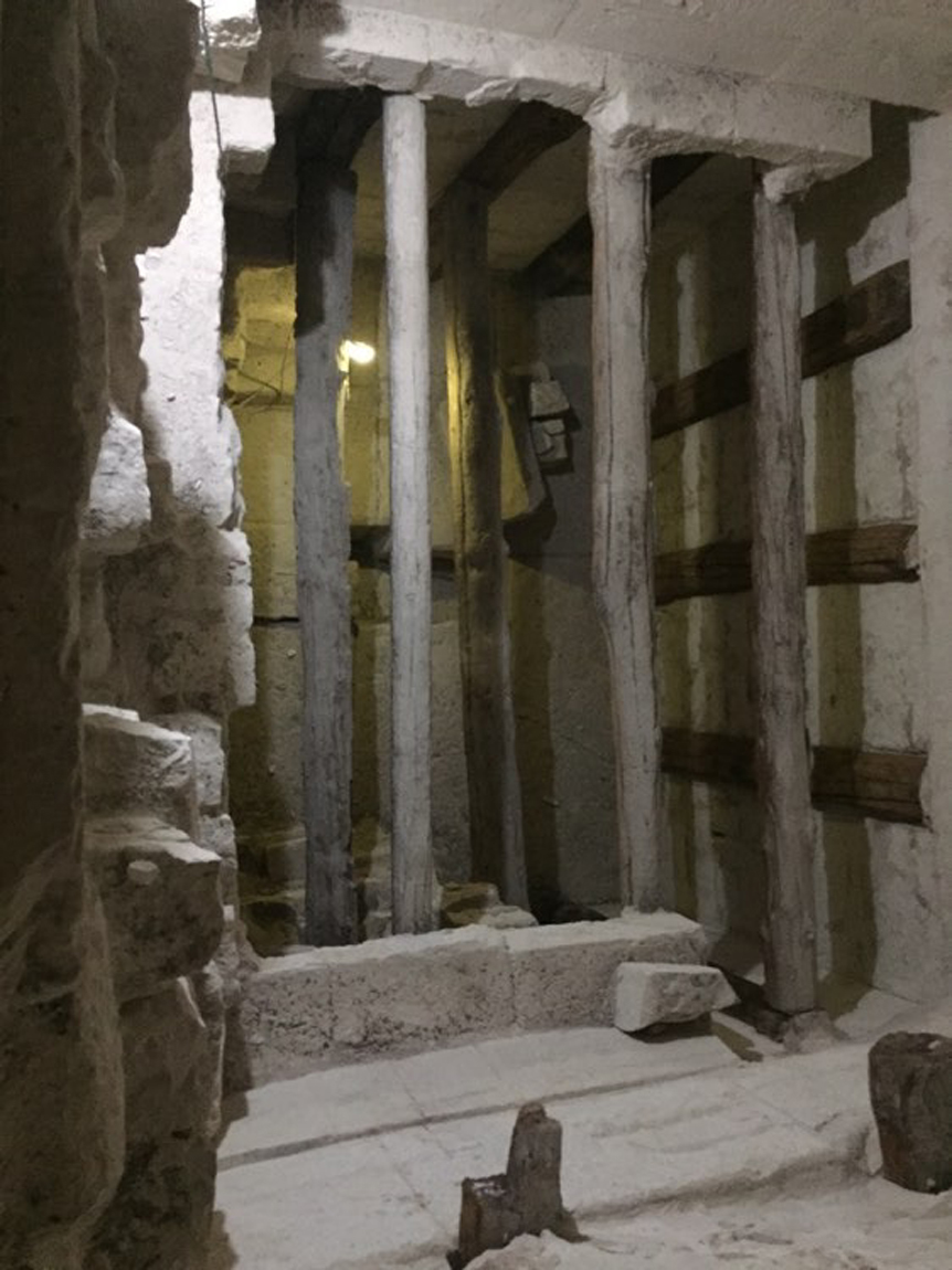 Le pareti laterali presentano delle aperture nelle quali furono rinvenute numerose travi in legno di cedro il cui uso è del tutto sconosciuto.